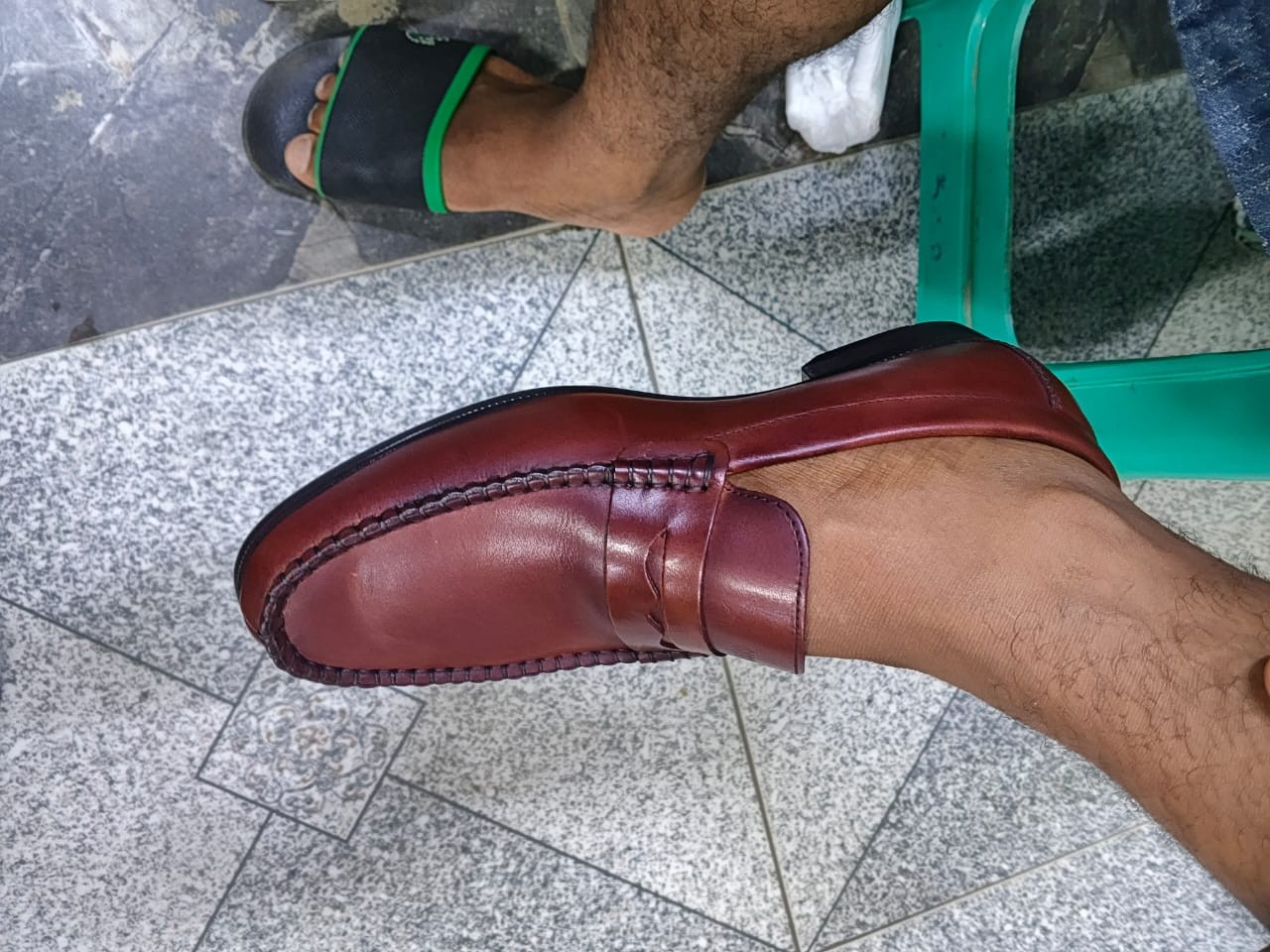 ⚫ Coutures moccasin faites à la main — Ce détail artisanal visible sur l'empeigne est la marque des grandes maisons. Chaque point est une preuve de savoir-faire.